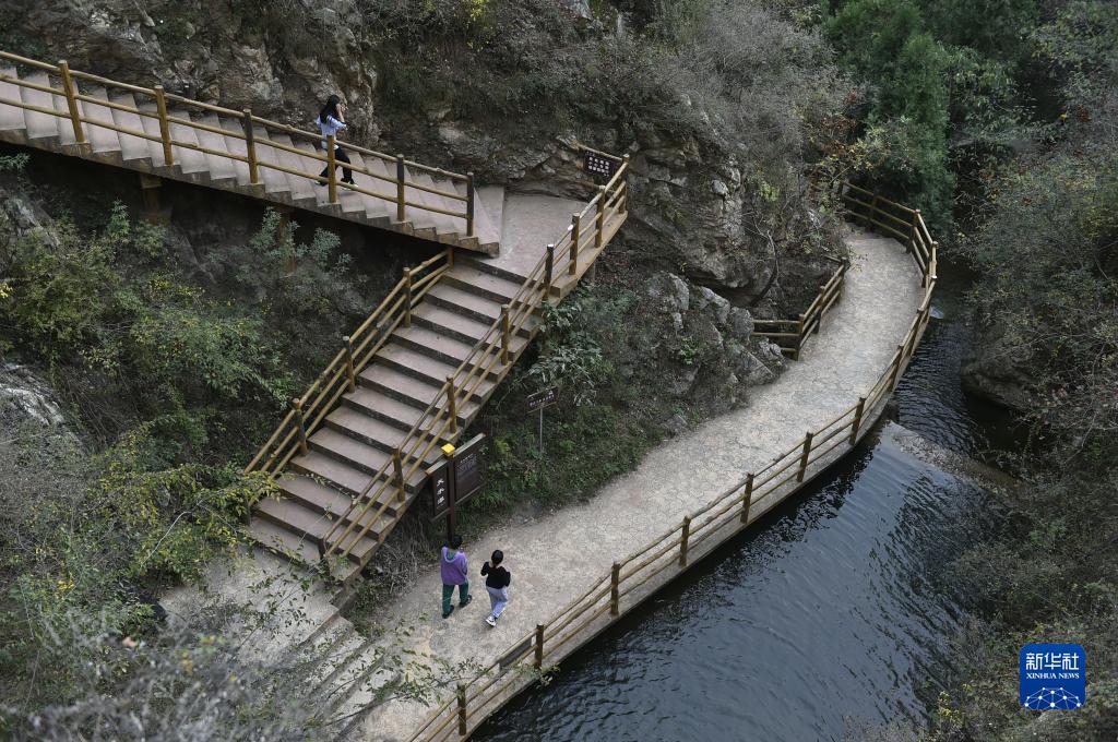 霜降節氣過后,位于河南省禹州市鳩山鎮的大鴻寨國家森林公園層林盡染,景色宜人,吸引游客前來登高觀景、賞秋拍照。