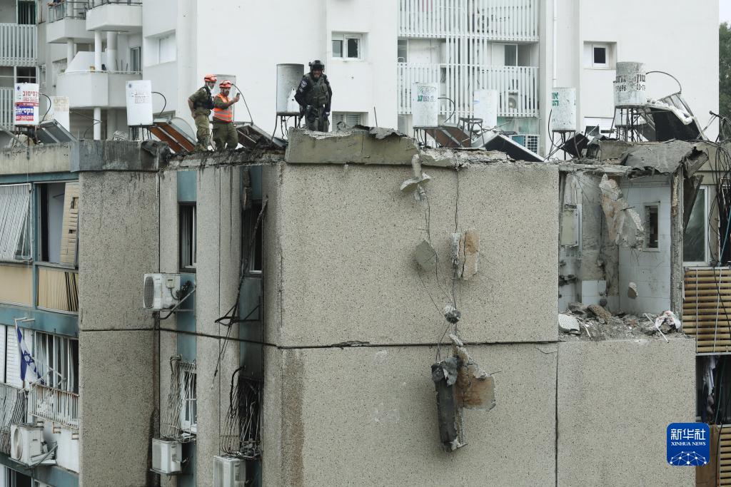 這是10月27日在以色列特拉維夫拍攝的遭到火箭彈襲擊的受損建筑。
