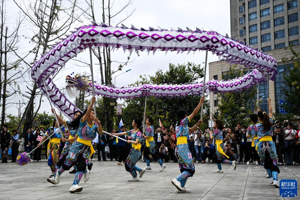 10月27日,在廣西桂林市山水公園,演員們在進行舞龍表演。