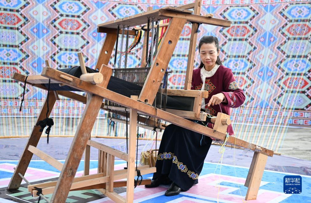“西蘭卡普”是一種土家族織錦,其技藝歷史悠久,以麻、棉紗為經,以多色彩的粗絲、毛絨線為緯編織制作。近年來,湖北省恩施土家族苗族自治州來鳳縣加強對“西蘭卡普”的保護與傳承,圍繞“西蘭卡普”傳統技藝打造文化旅游產品,促進土家族傳統技藝傳承,助力鄉村振興。