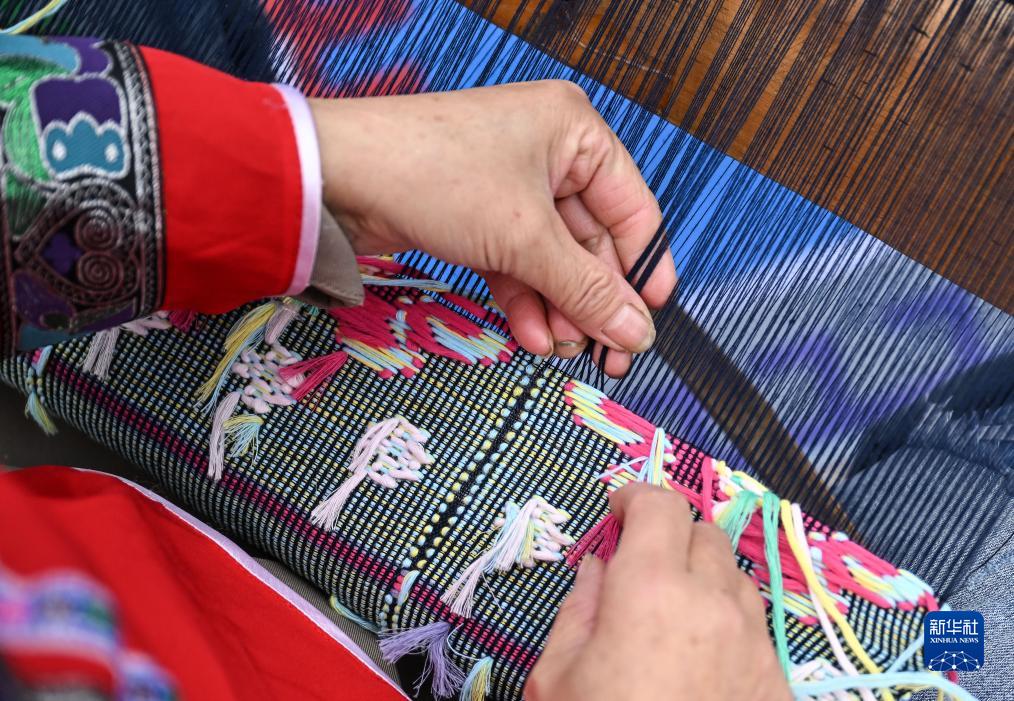 “西蘭卡普”是一種土家族織錦,其技藝歷史悠久,以麻、棉紗為經,以多色彩的粗絲、毛絨線為緯編織制作。近年來,湖北省恩施土家族苗族自治州來鳳縣加強對“西蘭卡普”的保護與傳承,圍繞“西蘭卡普”傳統技藝打造文化旅游產品,促進土家族傳統技藝傳承,助力鄉村振興。