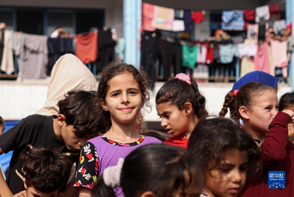 這是10月23日在加沙地帶南部聯(lián)合國(guó)近東巴勒斯坦難民救濟(jì)和工程處一所附屬學(xué)校內(nèi)拍攝的兒童。