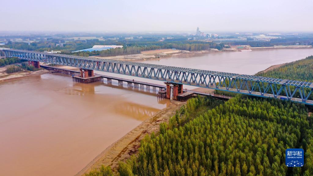 10月28日拍攝的合龍后的聊(城)泰(安)鐵路黃河公鐵橋(無人機照片)。