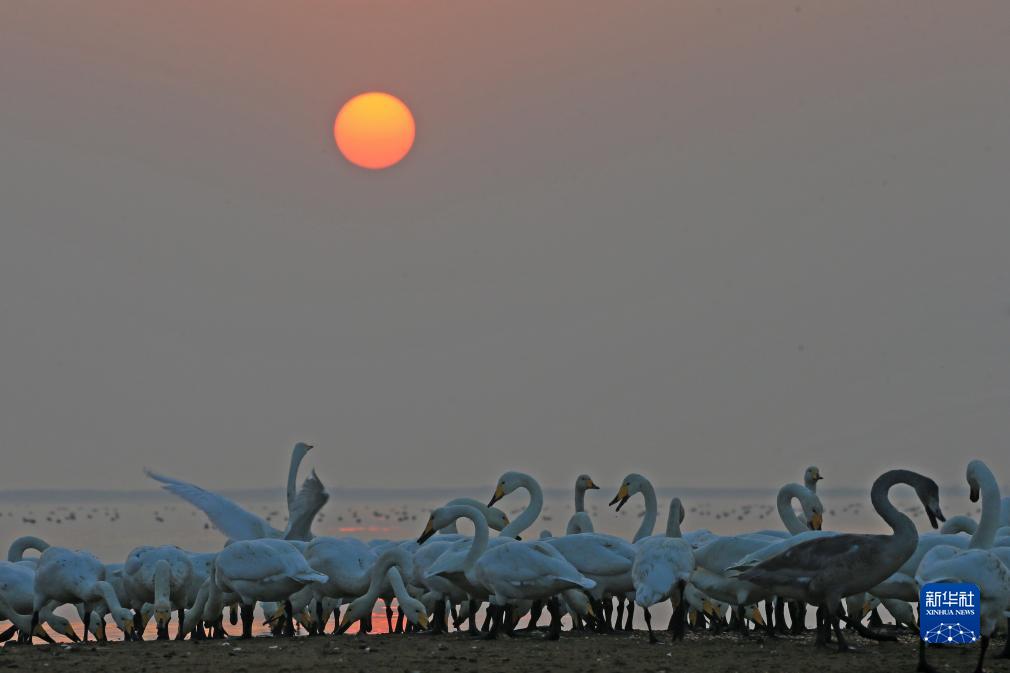 這是10月25日清晨拍攝的山東省榮成市天鵝湖景色。