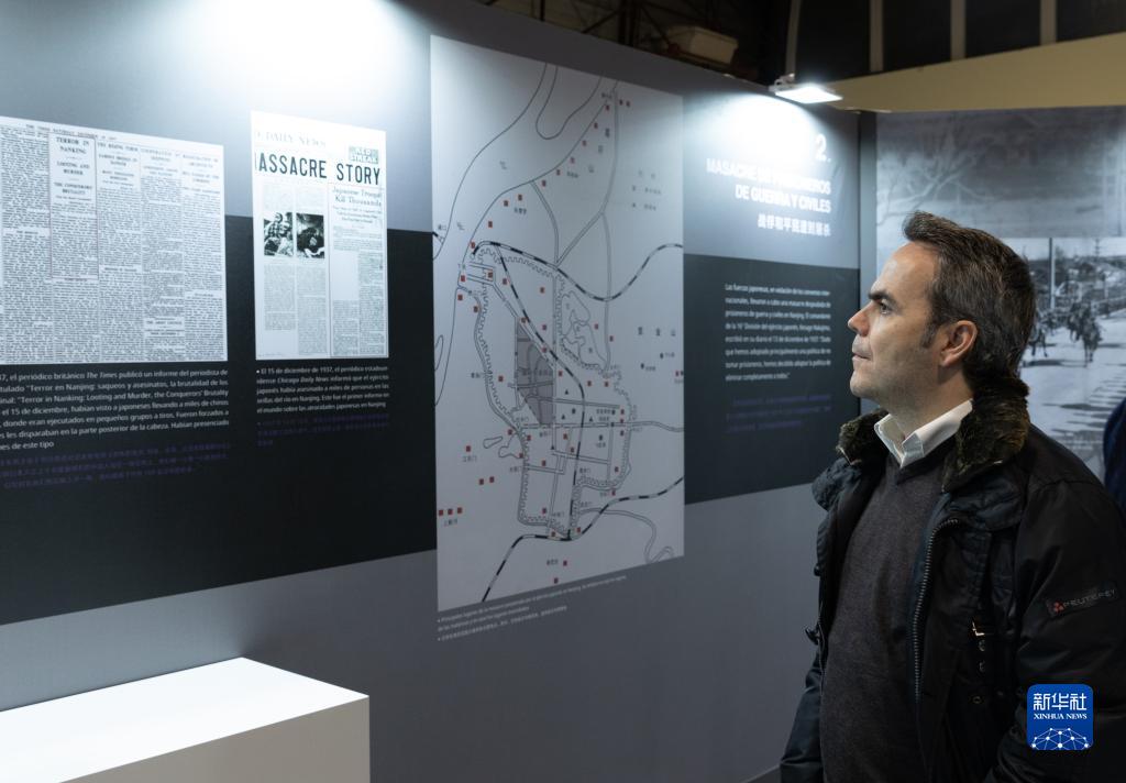 10月26日,觀眾在西班牙馬德里參觀《世界記憶、和平愿景——南京大屠殺史實展》。