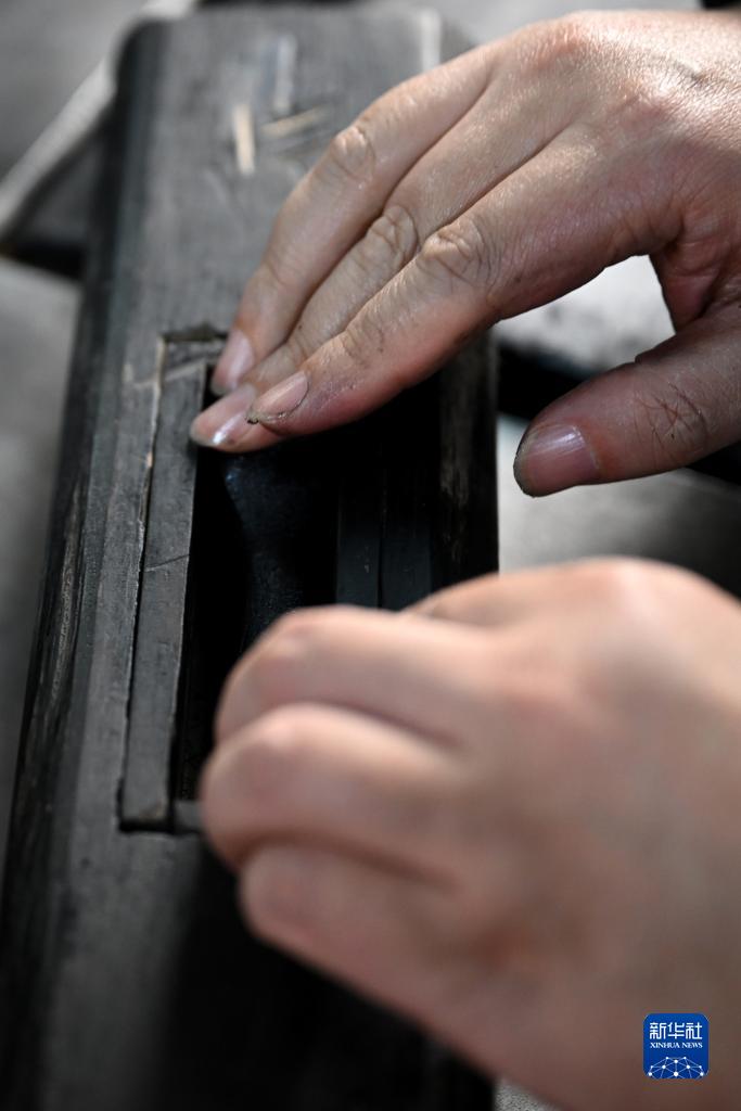 10月24日,在安徽省黃山市歙縣老胡開文墨業(yè)有限公司,周健將揉搓好的墨條放入墨模。