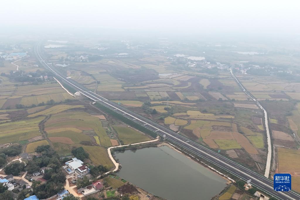 這是10月28日拍攝的通車后的無為至岳西高速公路(無人機照片)。