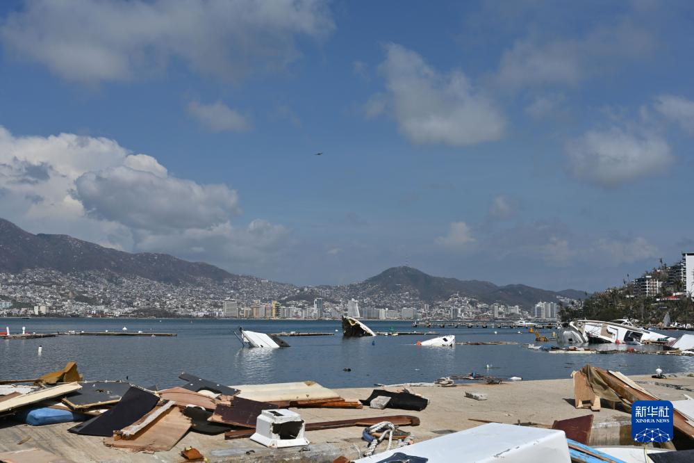 這是10月27日在墨西哥格雷羅州阿卡普爾科拍攝的被颶風“奧蒂斯”損壞的海灘。