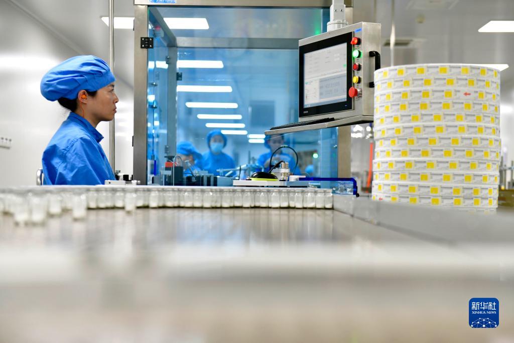 10月29日,在山東二葉制藥有限公司,工作人員在藥品生產(chǎn)線值守。