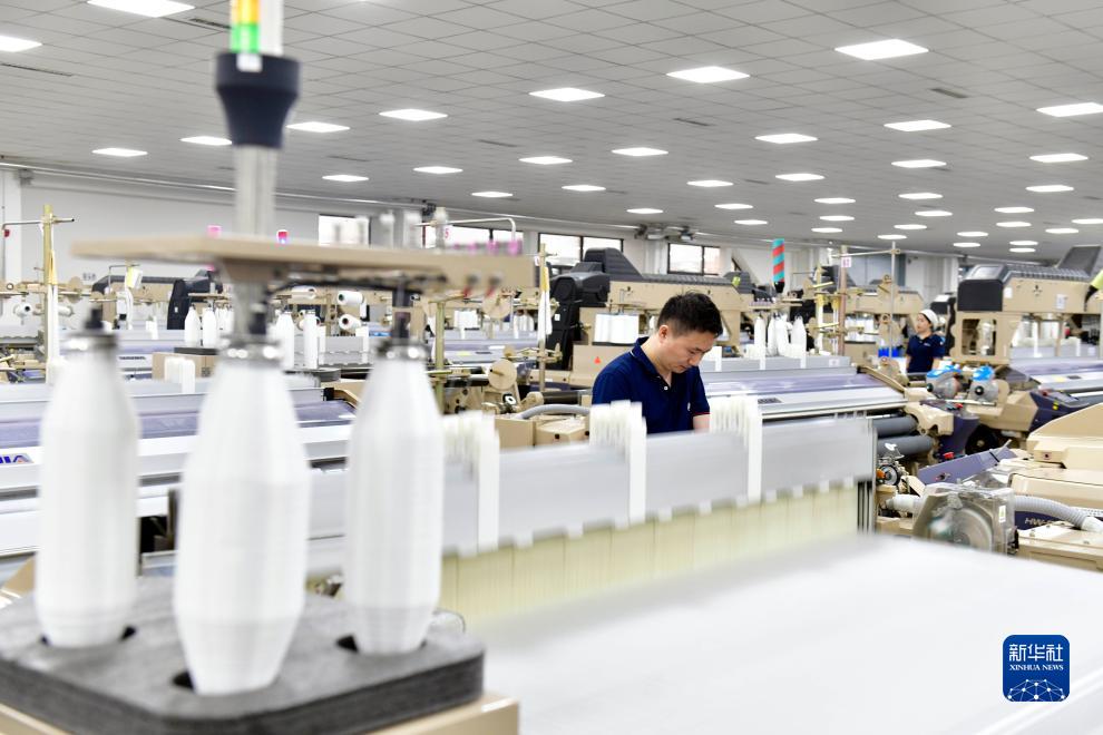 10月28日,在菏澤市定陶區華澤高端纖維新材料智能制造產業園,工作人員在生產設備前值守。
