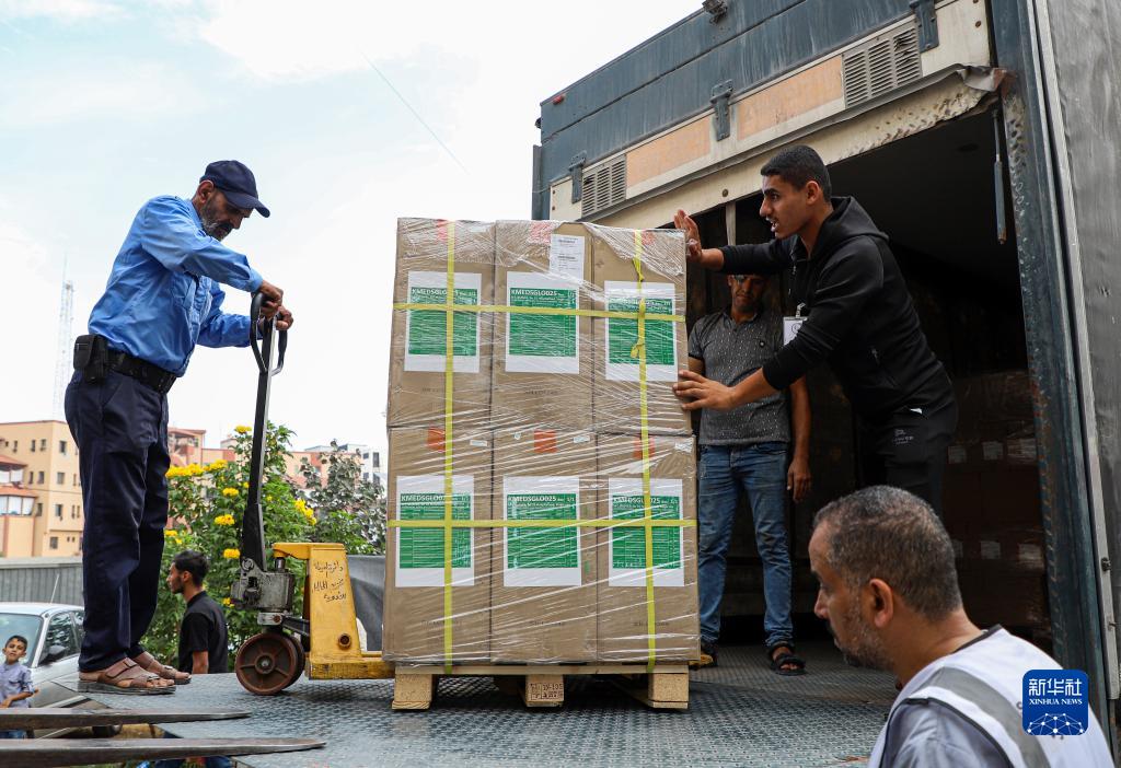 10月29日,工作人員在加沙地帶南部城市汗尤尼斯的一家醫(yī)院搬運(yùn)醫(yī)療援助物資。