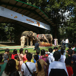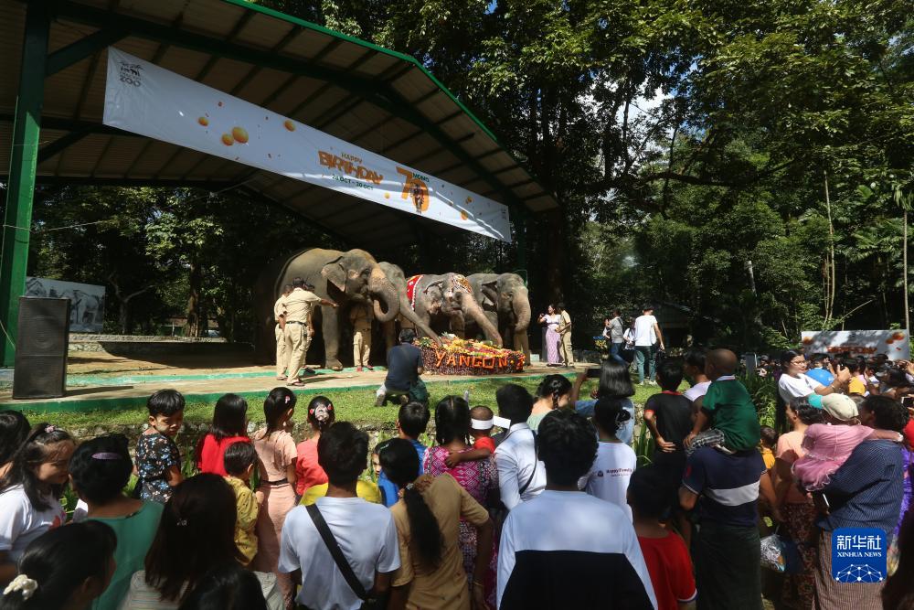 10月29日,人們在緬甸仰光動物園為雌性大象莫莫慶生。