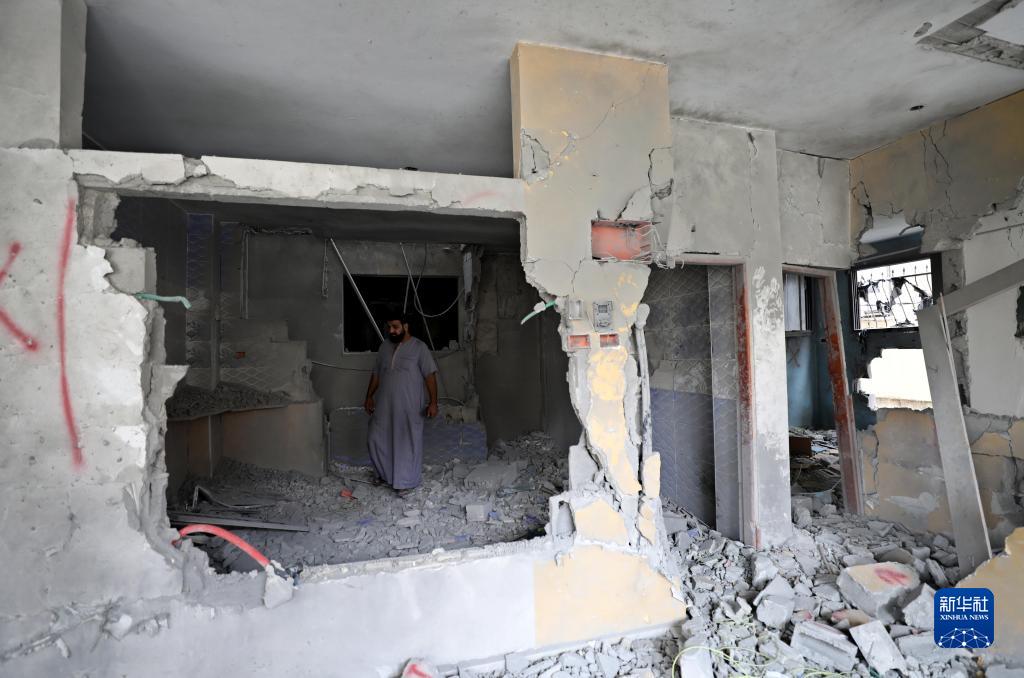 10月29日,在約旦河西岸城市納布盧斯附近,一名男子查看遭以色列襲擊損毀的建筑。