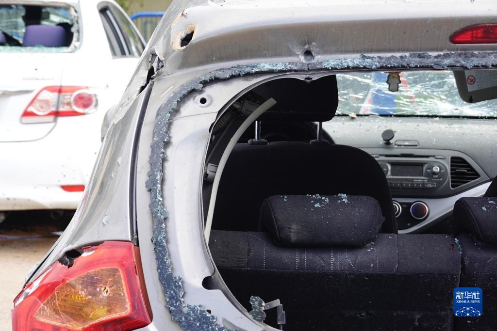 這是10月29日在以色列南部城市阿什杜德拍攝的遭火箭彈襲擊的車輛。