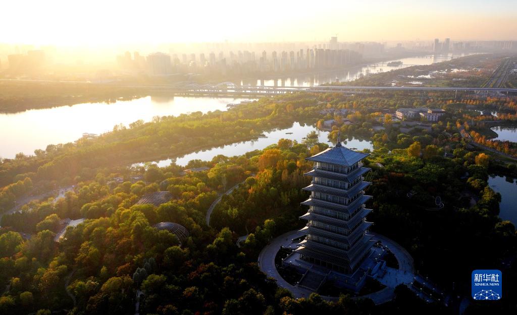 10月29日拍攝的西安世博園秋景(無人機照片)。
