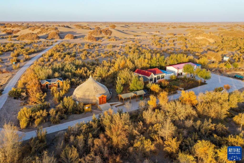 這是德力格老人在沙漠深處的家(無人機照片,10月27日攝)。