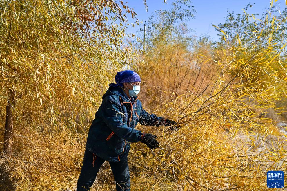 10月28日,德力格將修剪下來的樹枝堆放起來。