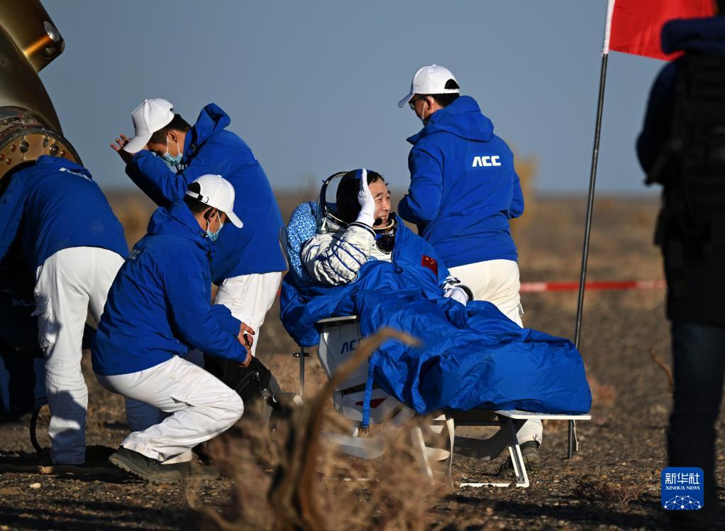 10月31日,神舟十六號載人飛船返回艙在東風著陸場成功著陸。這是航天員景海鵬安全順利出艙。
