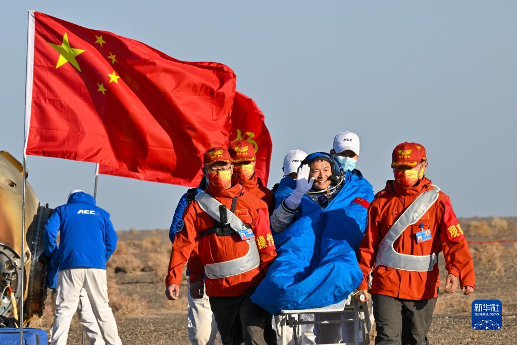 10月31日,神舟十六號載人飛船返回艙在東風著陸場成功著陸。這是航天員桂海潮安全順利出艙。