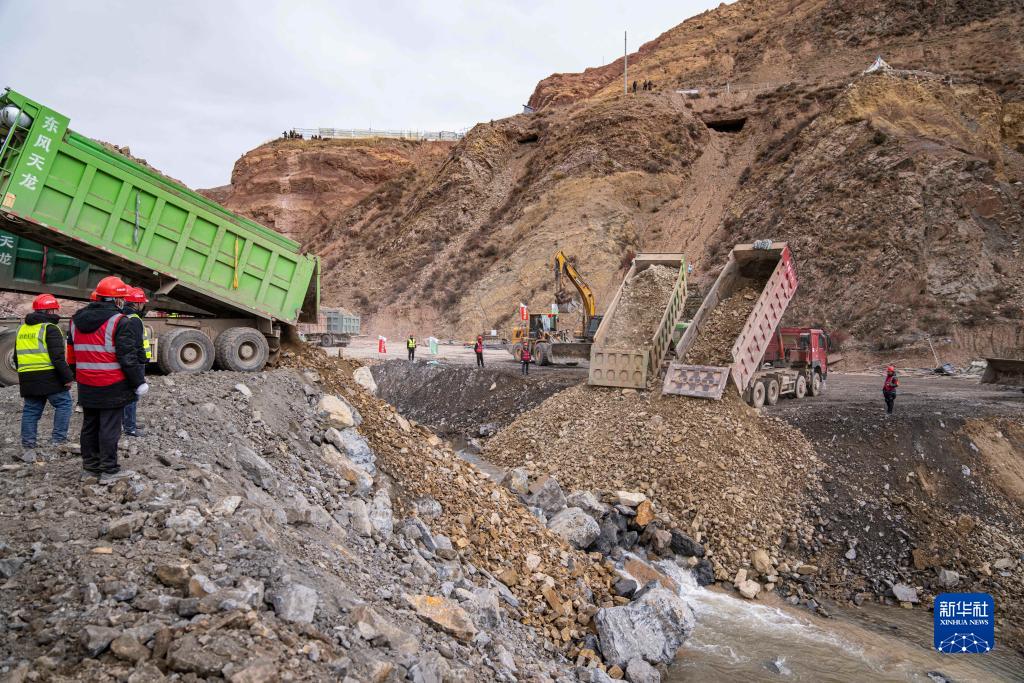 10月31日,施工人員在進行河道截流。