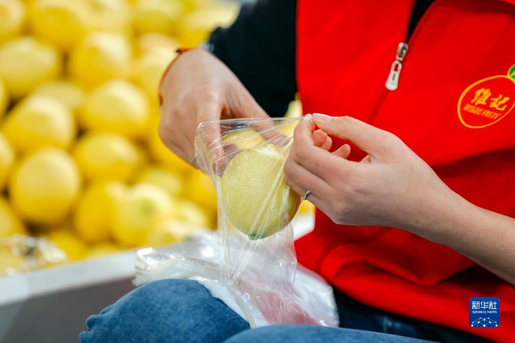 10月31日,在位于四川資陽(yáng)市安岳縣的四川省維記農(nóng)業(yè)集團(tuán)有限公司,工人包裝分揀好的新鮮檸檬。
