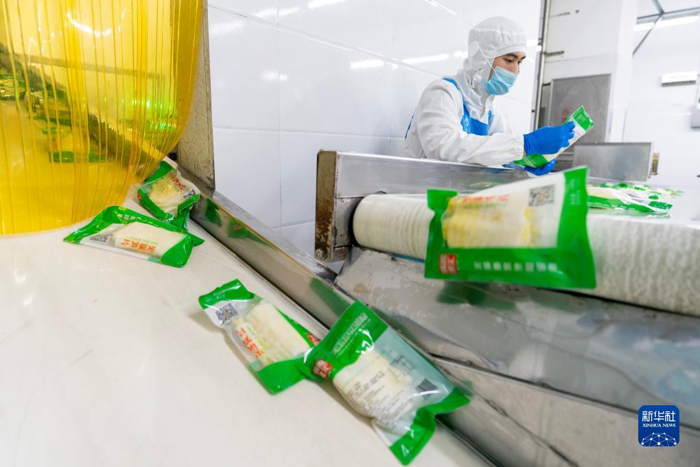 10月31日,昭通市大關(guān)縣一家竹筍生產(chǎn)企業(yè)員工在流水線上查看竹筍包裝情況。