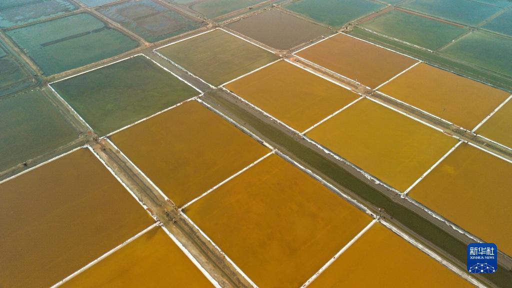 深秋時(shí)節(jié),遼寧省營口市老邊區(qū)的鹽田色彩斑斕,宛如大地的調(diào)色板,美不勝收。