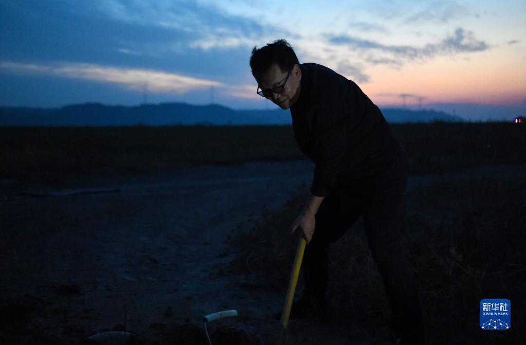 10月31日黃昏時分,王建在河南省武陟縣黃河岸邊采泥。