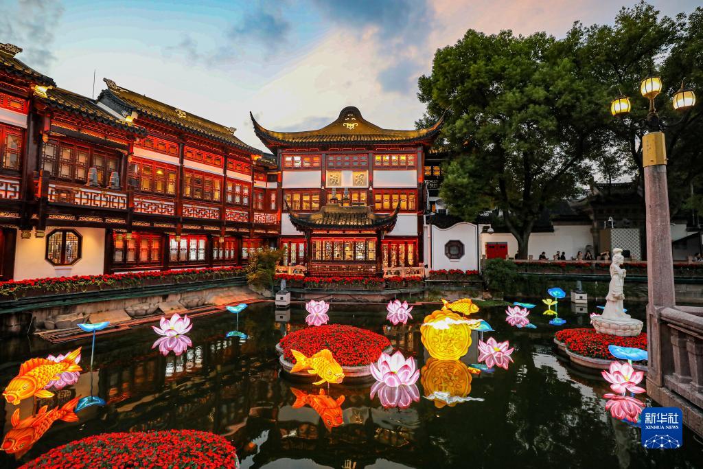這是10月11日在上海豫園九曲橋上拍攝的景色。