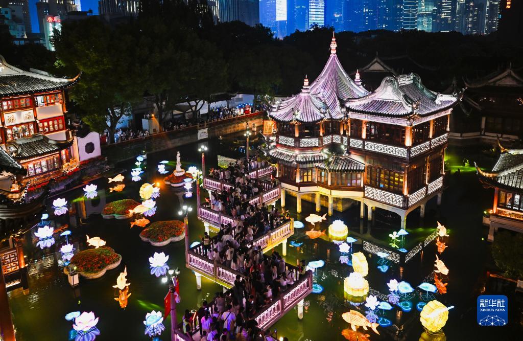 這是9月29日拍攝的上海豫園九曲橋夜景。