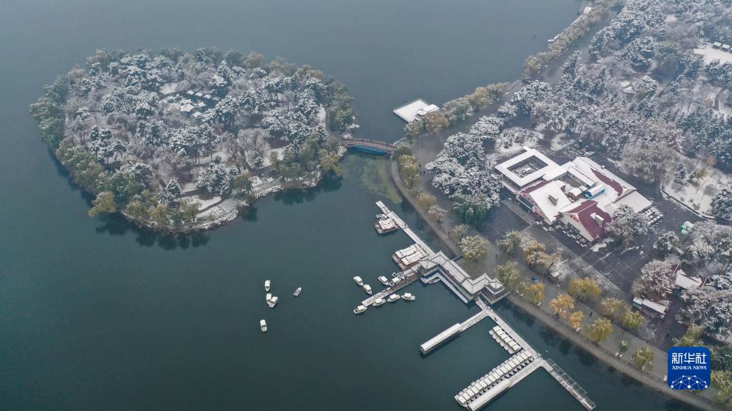 11月1日拍攝的長(zhǎng)春市南湖公園雪景(無(wú)人機(jī)照片)。