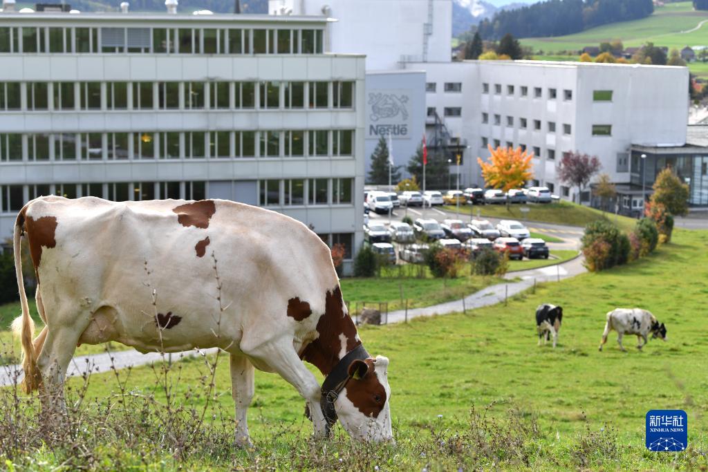 這是10月31日在瑞士科諾爾芬根雀巢工廠外的牧場拍攝的奶牛。