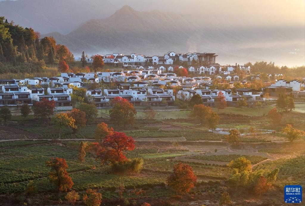 11月1日在安徽省黃山市黟縣宏村鎮盧村拍攝的秋景(無人機照片)。
