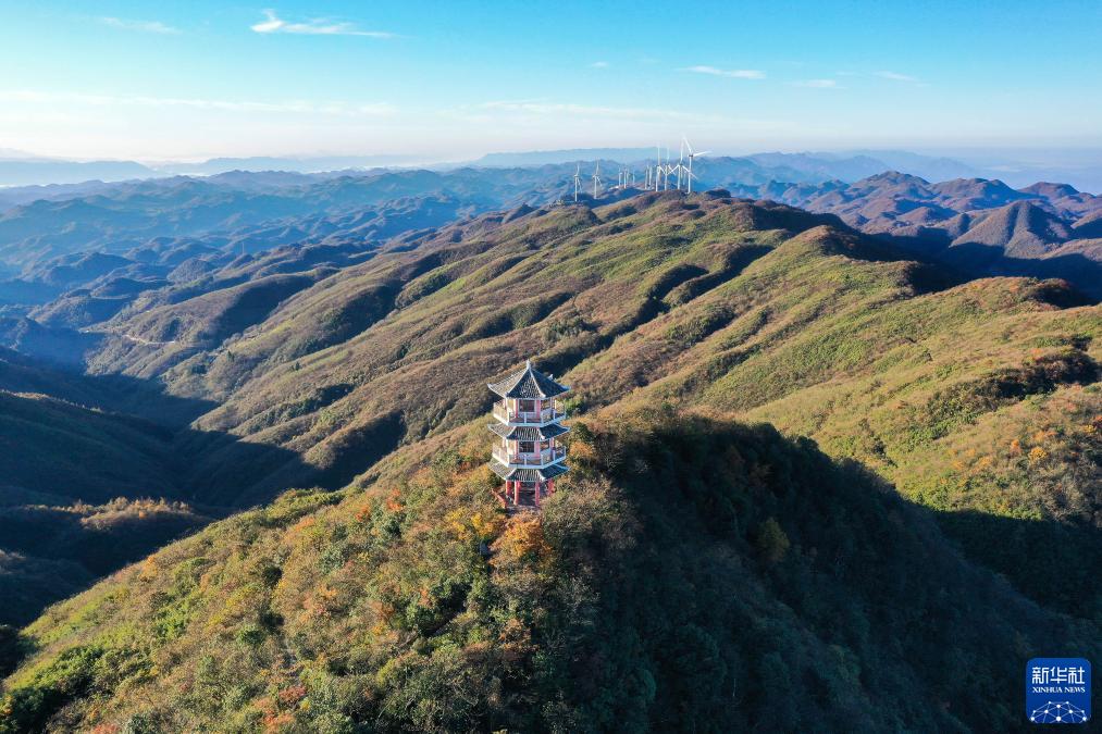 11月1日拍攝的湖南省湘西土家族苗族自治州龍山縣大安鄉萬寶山林場秋色(無人機照片)。