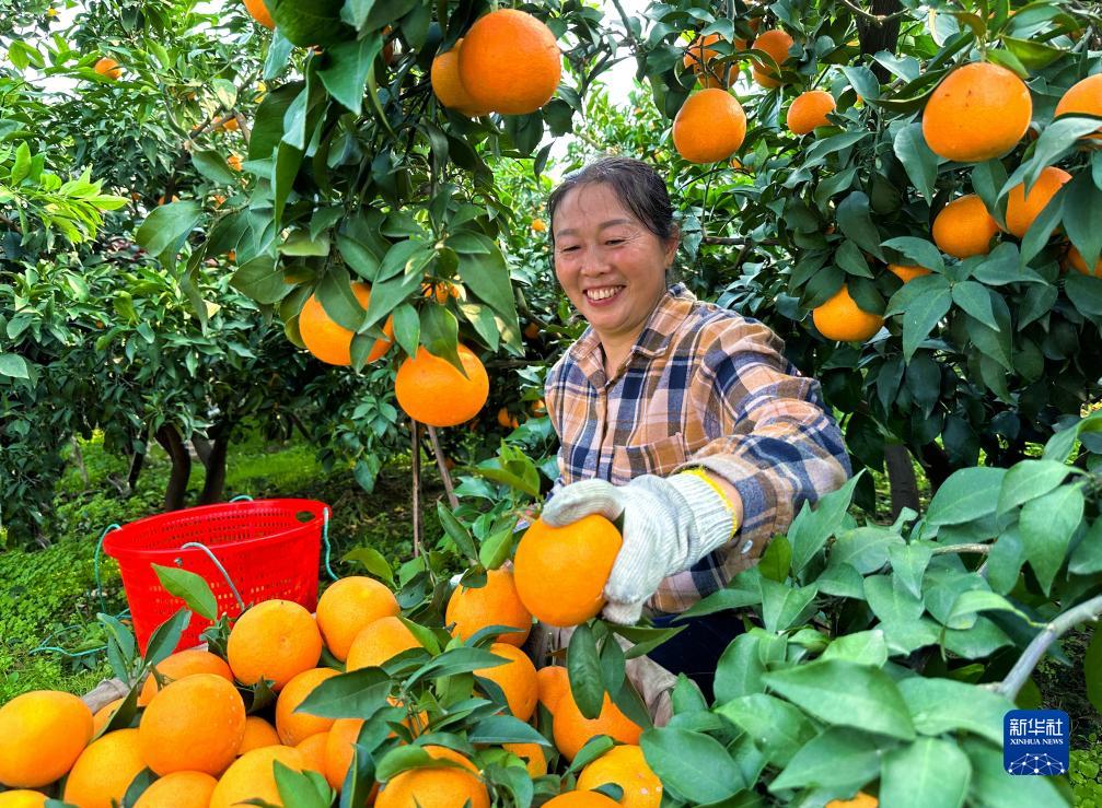 11月1日,四川省眉山市仁壽縣富加鎮大山村村民在采摘柑橘。