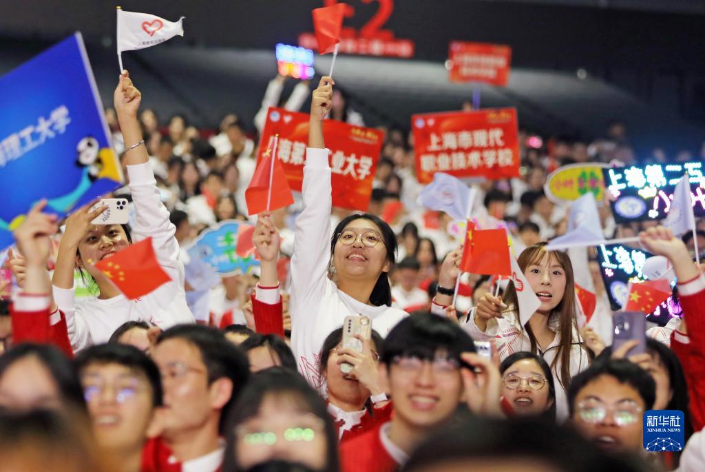 志愿者們在第六屆中國國際進口博覽會志愿者上崗宣誓儀式上(10月17日攝)。第六屆進博會已從上海40余所高校招募會期志愿者5700余名,他們將在引導咨詢、注冊管理、聯絡接待、輔助保障、醫療衛生等崗位上開展服務。
