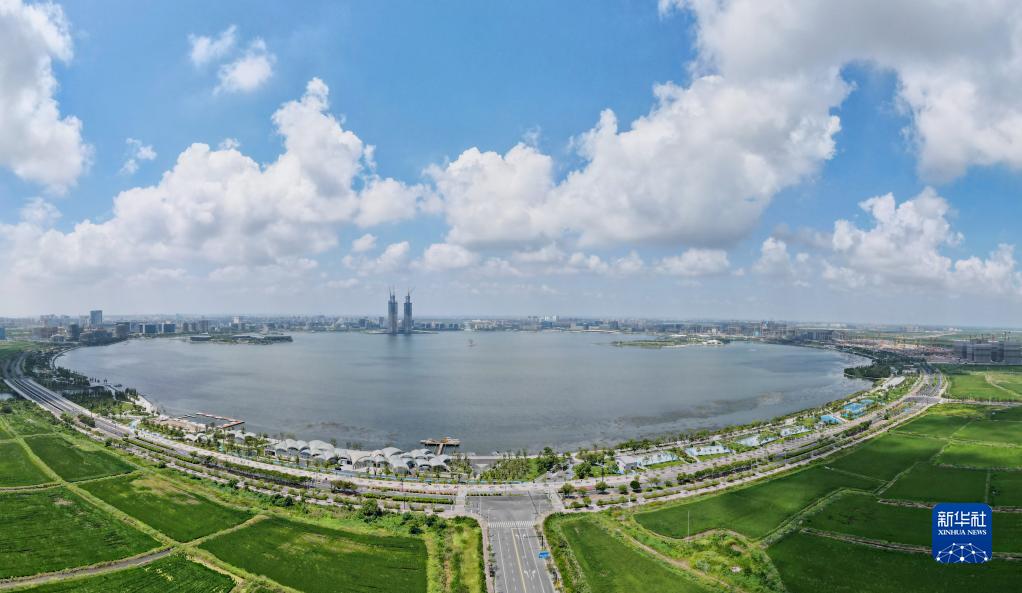 這是中國(上海)自由貿易試驗區臨港新片區滴水湖(9月6日攝,無人機全景照片)。