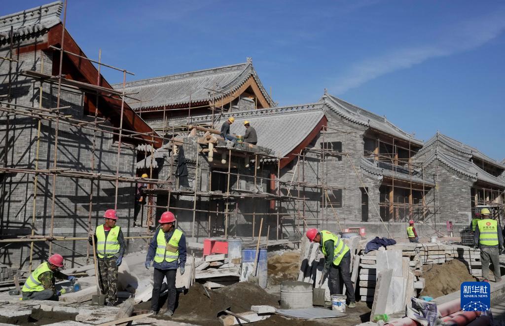 11月1日,工人在河北省張家口市萬全右衛(wèi)城長城國家文化公園文旅融合區(qū)項目建設(shè)工地施工。