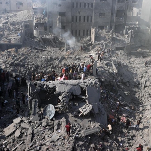 11月2日,在加沙地帶中部的布賴杰難民營,人們在以色列空襲后展開營救工作。