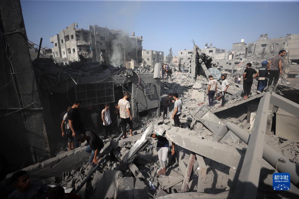 11月2日,在加沙地帶中部的布賴杰難民營,人們在以色列空襲后展開營救工作。新華社發(亞西爾·庫迪 攝)