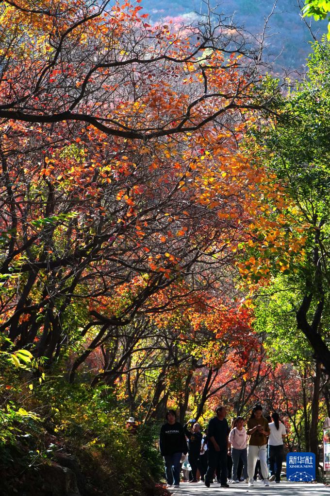金秋時(shí)節(jié),山東省濰坊市臨朐縣石門坊景區(qū)內(nèi)紅葉漫山,層林盡染,吸引游客前來觀賞游玩。