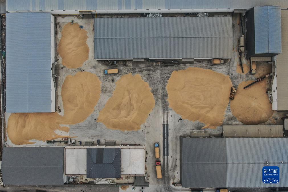 11月2日,農戶將收獲的稻谷送往盤錦市大洼區一家糧食加工企業(無人機照片)。
