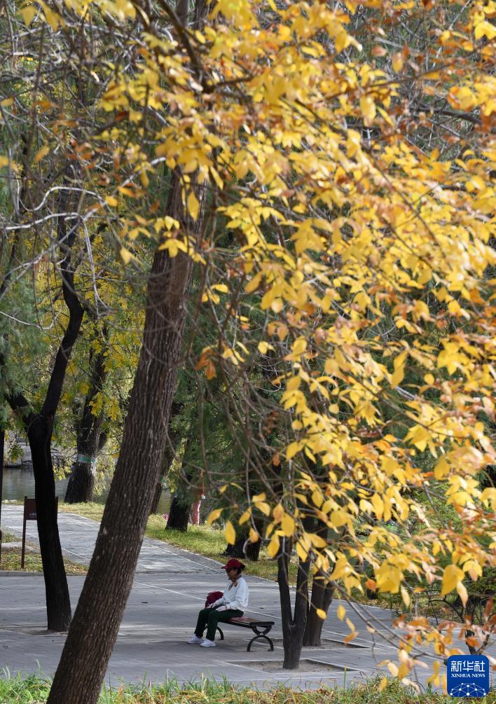 深秋時節,北京圓明園內層林盡染,園內種植的銀杏、白蠟樹、楓樹、槭樹、黃櫨等彩葉觀賞樹種,色彩斑斕,形成多個彩葉觀賞區,吸引眾多游客駐足觀賞、留影。