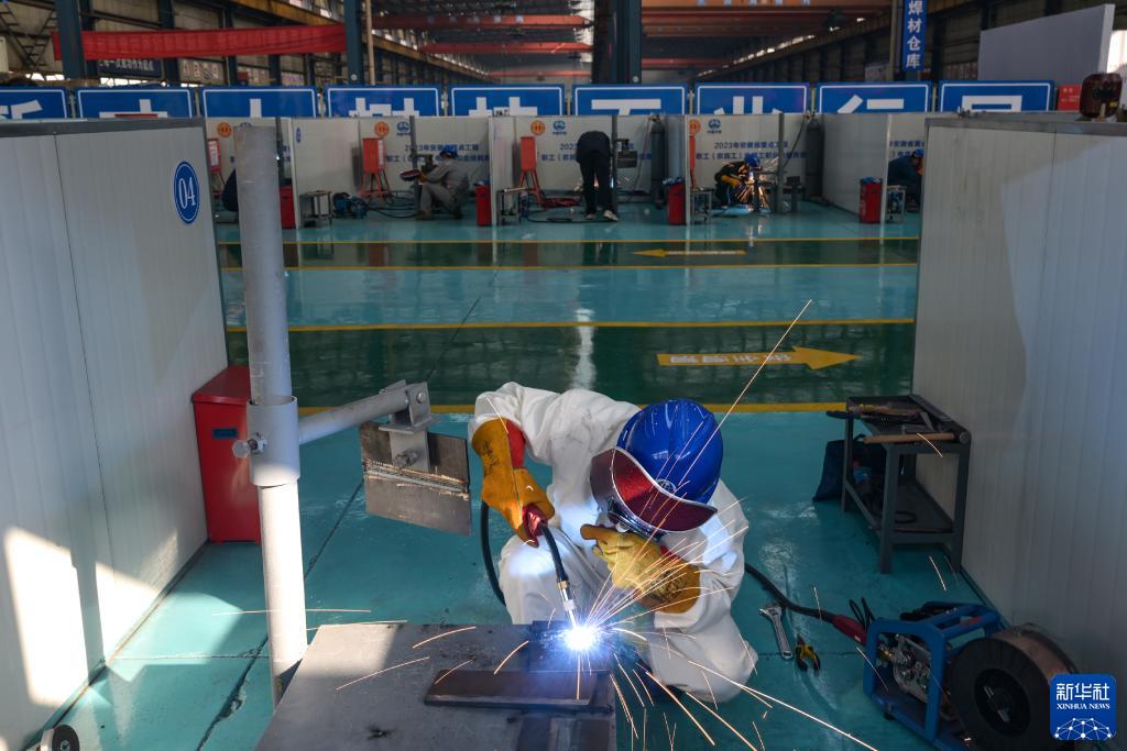 當(dāng)日,2023年安徽省重點(diǎn)工程職工(農(nóng)民工)電焊工職業(yè)技能競(jìng)賽在合肥舉行,來(lái)自安徽省重點(diǎn)工程建設(shè)崗位上的40名青年焊接能手在比賽中各展絕活、比拼職業(yè)技能。