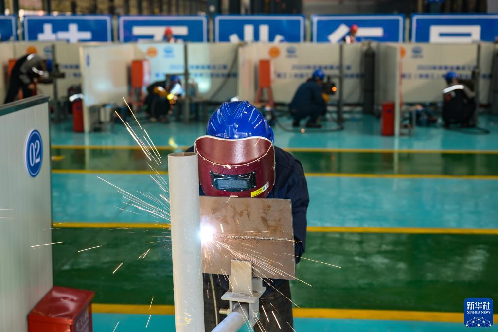 當日,2023年安徽省重點工程職工(農民工)電焊工職業技能競賽在合肥舉行,來自安徽省重點工程建設崗位上的40名青年焊接能手在比賽中各展絕活、比拼職業技能。