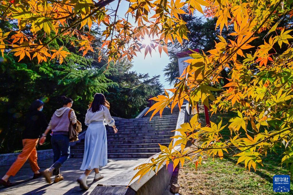 11月1日,游客在山東省青州市范公亭公園賞景游玩。