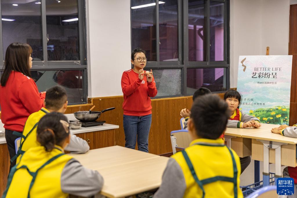 10月30日,在重慶市特殊教育中心,老師在勞動課教室教三年級的視力障礙學生煎雞蛋。