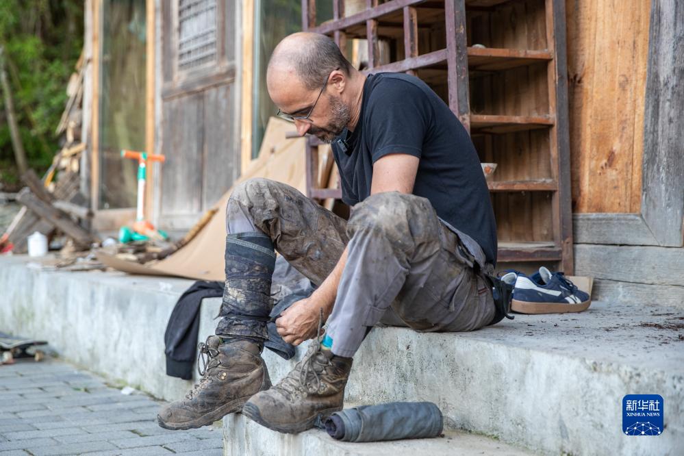 9月15日,在重慶市城口縣北屏鄉(xiāng)松柏村,文森在割漆前穿戴綁腿。