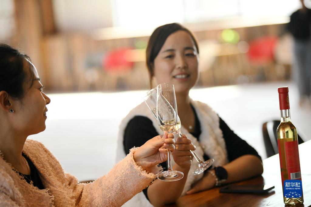 11月2日,在位于陜西省富平縣的云集柿業富平柿園綜合項目,顧客品嘗由富平尖柿釀造的柿子酒。