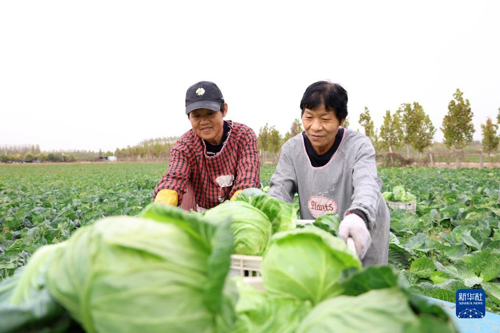 11月3日,在山東省聊城市茌平區菜屯鎮鳳凰新村蔬菜種植基地,農民在采收甘藍。